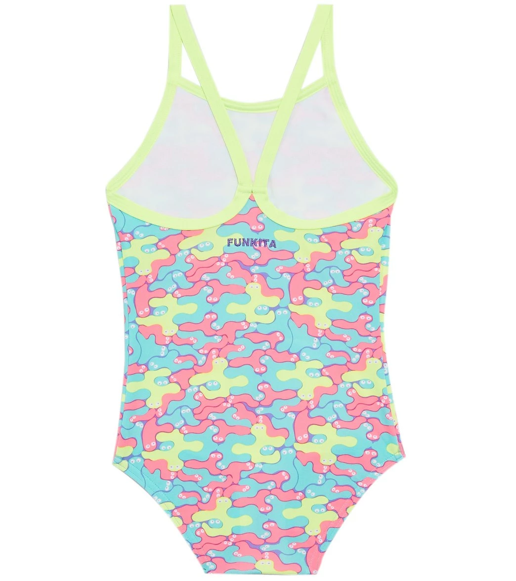 Explore everything in the water with the Funkita Toddler Girls’ Jelly Jubes Printed One Piece Swimsuit.