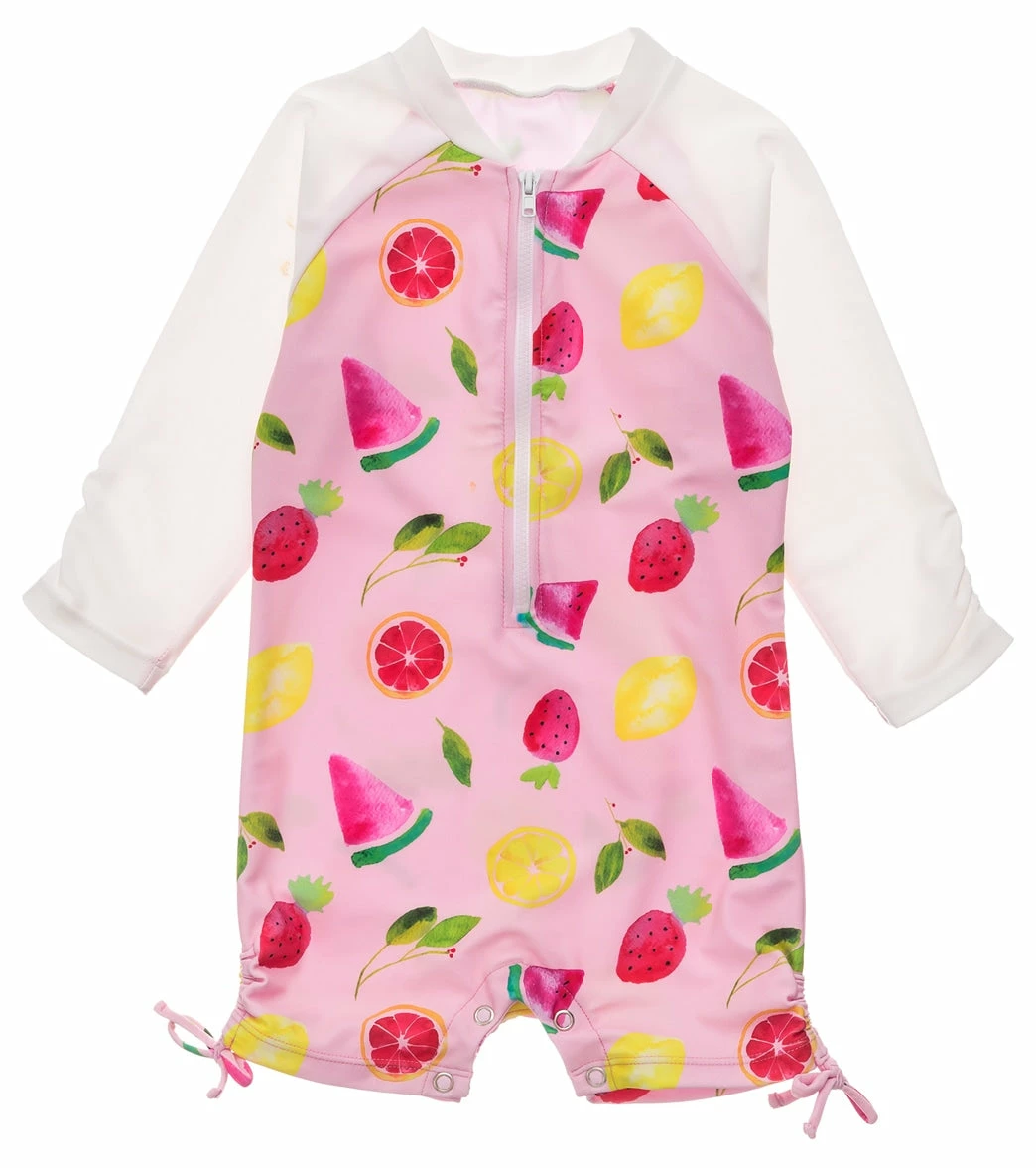Keep your baby’s skin protected from the sun in the Snapper Rock Girls’ Fruit Fiesta Long Sleeve Sunsuit.