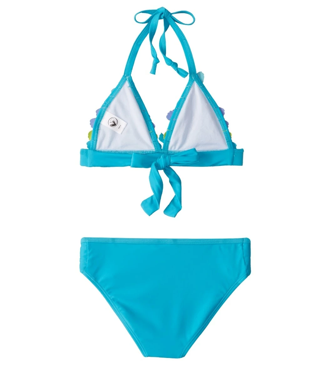 Feel super sweet by the sea with seashell style. The Limeapple Koko Seashell Bikini Set features fluttering seashells on the top’s triangle front in cute colors. It includes adjustable neck, center back and bottom side ties.
