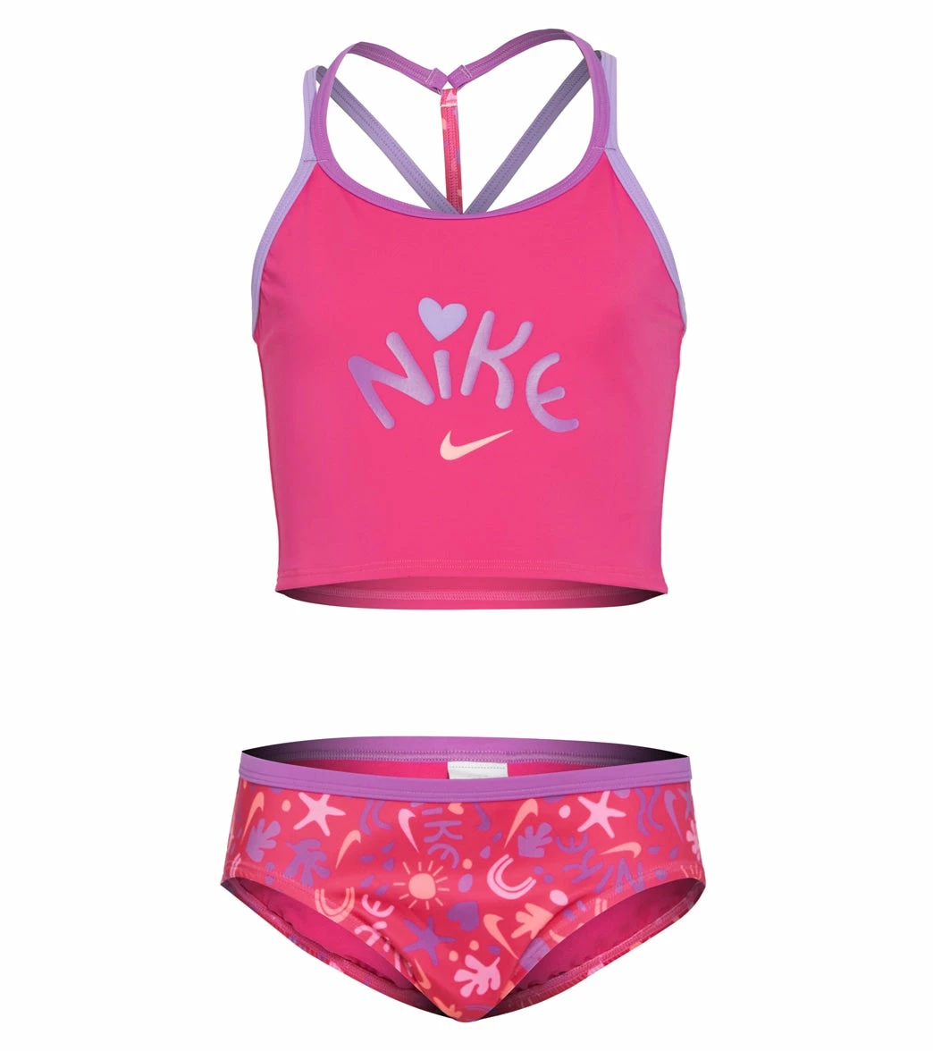 The Nike Girls’ Fun Forest T-Crossback Two Piece Midkini Set(Big Kid) has an ergonomic enhanced fit that’s designed for young athletes.