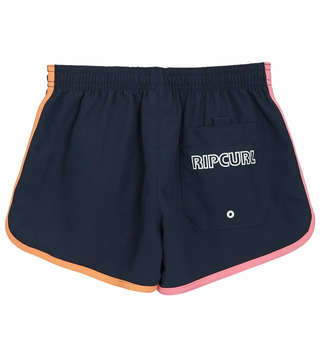 The Rip Curl Girls’ Day Break Board Shorts (Big Kid) is a rad retro surf short, featuring scalloped hems, 70’s Rip Curl pump font, and contrast binding. Made from recycled ripsuede fabric that’s comfy, durable, and perfect for a day in the waves.