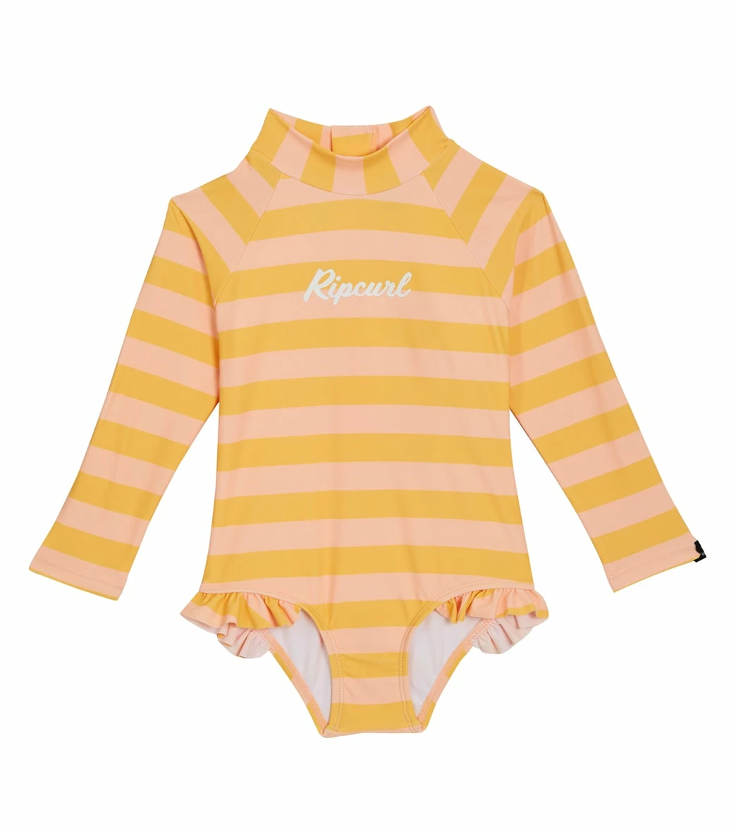 Bask in those carefree summer vibes all year round in the Rip Curl Girls’ Vacation Club Long Sleeve One Piece Swimsuit (Toddler, Little Kid).