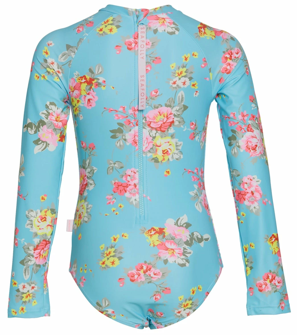 Splash around in the Seafolly Girls’ Paradise Garden Zip Back Long Sleeve One Piece Swimsuit (Big Kid)