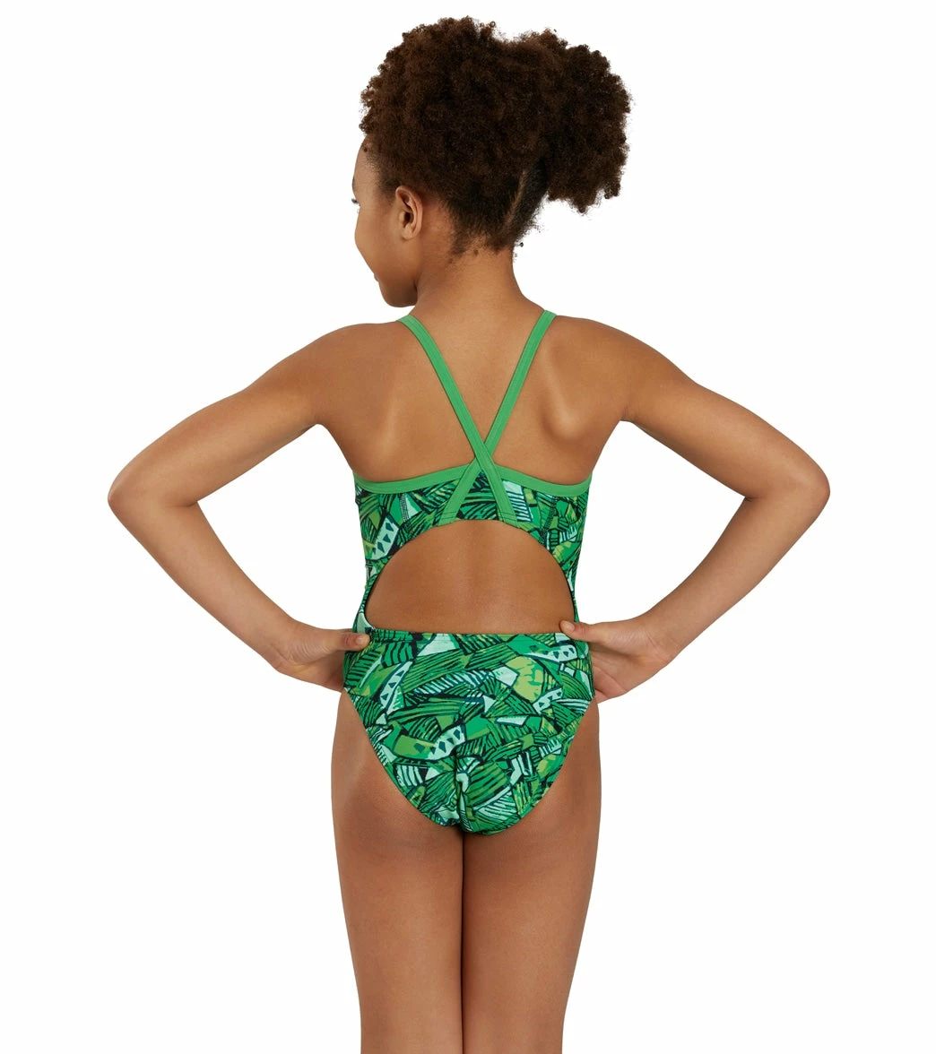 Dive into practice with a new style in the Sporti Tribal Graffiti Thin Strap One Piece Swimsuit Youth (22 – 28), featuring a vibrant print and a Lycra Xtra Life construction for superior performance and a lasting fit.